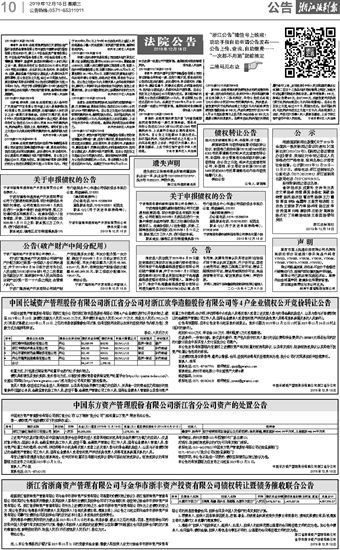 中国东方资产管理股份有限公司浙江省分公司资产的处置公告