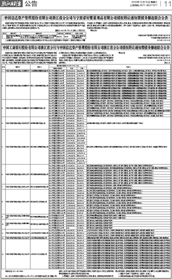 中国工商银行股份有限公司浙江省分行与中国信达资产管理股份有限公司浙江省分公司债权转让通知暨债务催收联合公告