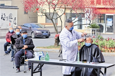 “二月二剃龙头,一年都有好盼头。”2月24日,安吉梅溪镇龙翔、白云社区的爱心人士开展送理发服务进家门活动,免费为宅家的社区居民理发,居民们有序间隔距离排队,依次等候。