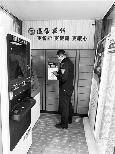 据了解,智能警柜是龙湾区公安分局蒲州派出所为推进“最多跑一次”改革而创新研发出的一项便民服务设备。群众可通过刷身份证、人脸识别,或通过“温警在线”公众号扫描二维码进入“温警在线24小时自助服务区”办理业务。