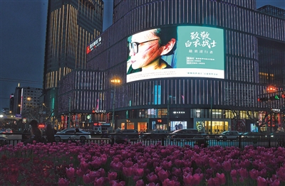 3月2日晚6点,杭州武林广场的户外LED大屏上开始滚动播放100幅医护人员战“疫”一线的巨幅海报和“致敬白衣战士”的宣传主题口号。这是浙江省卫生健康委、杭州市城市管理局、杭州市上城区人民政府联合主办的“致敬白衣战士”公益宣传活动。