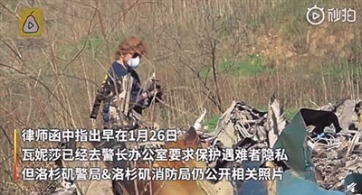 3月2日,科比遗孀瓦妮莎在社交媒体上发布律师函,正式起诉泄露科比空难照片的警员。律师函中指出,早在1月26日,瓦妮莎已经去警长办公室要求保护遇难者隐私,但洛杉矶警局和洛杉矶消防局仍有警员公开相关照片。瓦妮莎要求对那些泄密空难照的警员进行最严厉的惩罚,并对此事做内部调查。