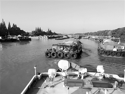 截至8月17日中午,京杭运河杭州余杭段崇贤三家村至武林头水域已停泊运输船舶480艘左右,远超停泊能力,河面宛如大型露天水上停船场。原来,受持续高温少雨天气、小潮水等因素影响,钱塘江水位近期持续走低,导致杭州三堡船闸通航能力大幅降低,大批重载货船滞留。