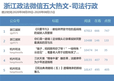 恭喜“浙江监狱”重夺司法行政榜冠军。不仅如此,该公众号的文章《〈只要平凡〉:献给依然坚守在抗疫战线的监狱人民警察》《你们是一道墙丨这些镜头记录着监狱民警最真实的苦与乐》均在热文榜前三。生而平凡的监狱人民警察在这个不平凡的2020年,毅然坚守,推文通过微视频的形式向他们致敬。