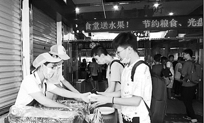 近日,江西省餐饮烹饪行业协会发出倡议,制止餐饮浪费行为,弘扬节约美德。江西理工大学校园食堂通过“光盘换水果”行动,倡导学生节约粮食。学生只要把饭菜吃完清盘,就可以换一个饭后水果。