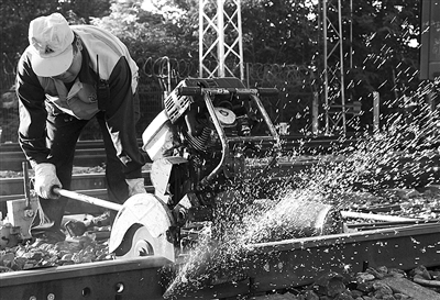 | 宋相云在进行锯轨作业 |