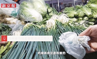贵阳多个农贸市场现染色香葱 纸巾一擦就掉色
