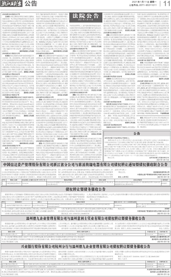中国信达资产管理股份有限公司浙江省分公司与慈溪骏瑞电器有限公司债权转让通知暨债权催收联合公告