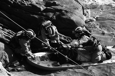 近日,舟山普陀山消防救援大队接到指挥中心报警,称一名游客在普陀山观音跳景区观看日出时,没注意到海水涨潮,结果被困礁石上。消防队员立即赶到现场,利用桨板从上游方向接近被困游客,将其安全营救上岸。