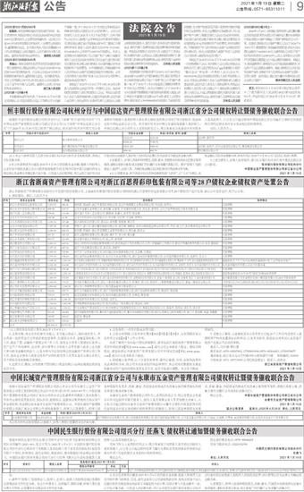 浙江省浙商资产管理有限公司对浙江百思得彩印包装有限公司等28户债权企业债权资产处置公告