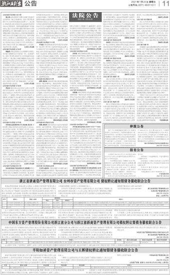 浙江省浙商资产管理有限公司 台州市资产管理有限公司 债权转让通知暨债务催收联合公告