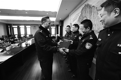 近日,温州市公安局龙湾区分局各科所队代表喜气洋洋地从局领导手中接过《温州市龙湾公安志(1985-2015)》。该志设26章,共50余万字,记述了龙湾公安分局建局以来公安业务和队伍建设的发展历程和工作业绩,填补了龙湾公安专业志书的历史空白。通讯员 杨继划 摄