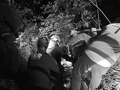 19时许,救援人员发现了最后一名脚部受伤的驴友并将其固定到担架上,再将全部被困驴友护送下山。