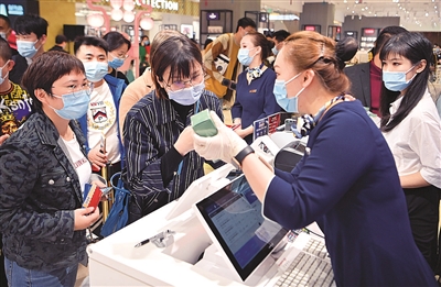 1月31日,顾客在海控全球精品(海口)免税城选购商品。