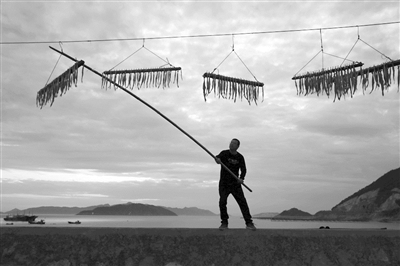 新年临近,玉环市大麦屿街道鲜叠社区房前屋后晾晒的鱼鲞成为一道美丽风景线。鱼鲞是海岛玉环特色水产品。渔船开捕归来,随着大量海鲜上岸,玉环渔民们趁着晴好天气、把墨鱼、马鲛鱼、龙头鱼等海产品,腌制、晾晒,加工成鱼鲞销往省内外,供应春节市场需求,增加经济收入。
