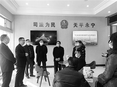 近日,台州市黄岩区法院开展“代表委员进法院”公众开放日活动。人大代表、政协委员通过参观审判服务中心、无纸化法庭等,零距离感受法院信息化建设成果。