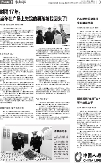浙江法制报 市井事 00003 时隔17年, 当年在广场上失踪的男孩被找回来了! 2021-02-05 2 2021年02月05日 星期五