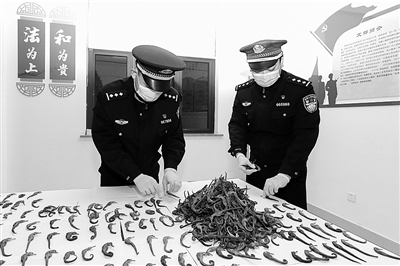 2月4日,岱山县公安局民警正在清点缴获的海马干。