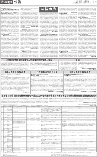 华夏银行股份有限公司杭州分行与中国信达资产管理股份有限公司浙江省分公司债权转让暨债务催收联合公告