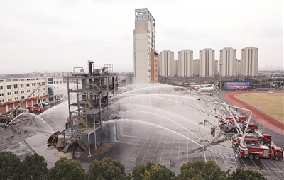 临近春节,绍兴市消防救援支队组织开展高喷消防车最大效能测试,检测实际作战效能,提升灭火救援能力,保障群众平安过节。