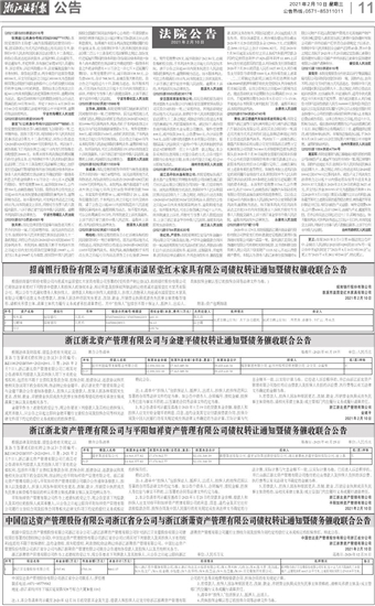 浙江浙北资产管理有限公司与平阳如祥资产管理有限公司债权转让通知暨债务催收联合公告