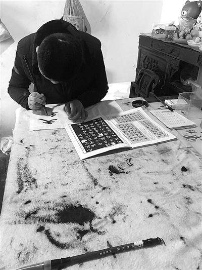 | 陈欢用旧毛笔写字 |
