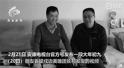 2月21日,陕西安康电视台发布一段大年初九(20日)朋友看望“卫国戍边英雄团长”祁发宝的视频。画面中,祁发宝身体恢复情况良好,笑着与朋友合影。另据报道,经陆军军医大学附属医院专家们的精心救治,祁发宝已于春节前伤愈。