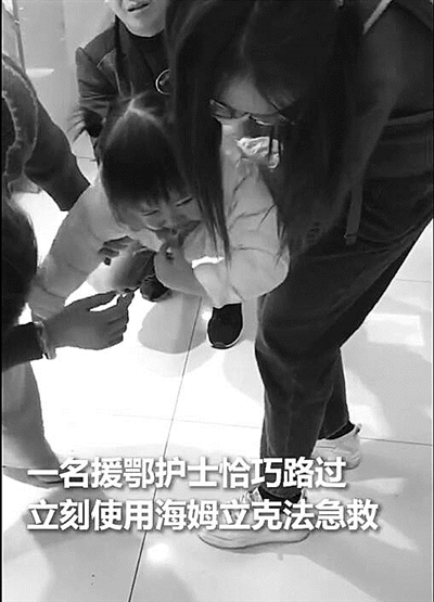2月21日,四川成都,一女孩在商场内被糖果卡住,成都中医药大学首批援鄂护士肖丽正好经过,她果断出手,使用海姆立克法对女童实施急救,女童最终转危为安。为白衣天使点赞!