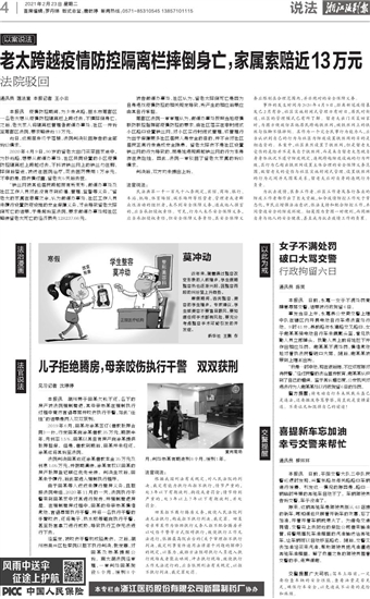 老太跨越疫情防控隔离栏摔倒身亡,家属索赔近13万元