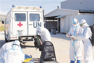 在联合国驻黎巴嫩临时部队(联黎部队)统一部署下,中国第19批赴黎维和医疗分队2月23日与多国维和分队联合开展应急医疗救援演练。