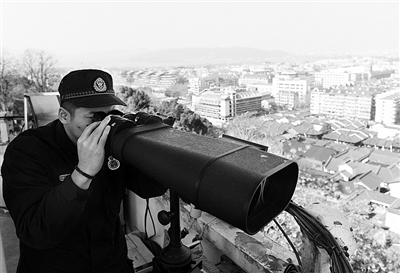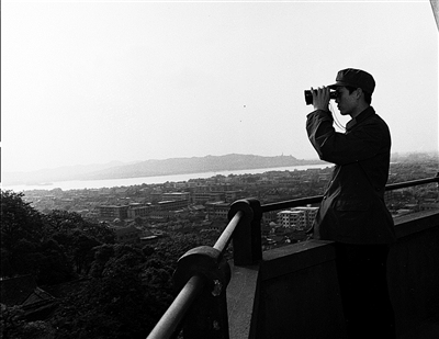在瞭望塔顶层,张伟明一边介绍一边用军用望远镜查看周边区域,“以前这里是杭城制高点,杭州哪里冒烟了,瞭望员就会用钟声发出预警,不同的钟声数代表着不同的区域。现在,瞭望塔则插上高科技的翅膀。”张伟明说,目前消防站里配备了全省首套全新的AI赋能消防预警系统——吴山天眼系统,通过安装在瞭望塔塔顶的鹰眼摄像机和热成像摄像机等设备,实现方圆30公里范围内全天候高低空自动火灾巡检。一旦感应到温度异常,系统会自动锁定并向指挥中心预警,有效提升火灾预警能力。
