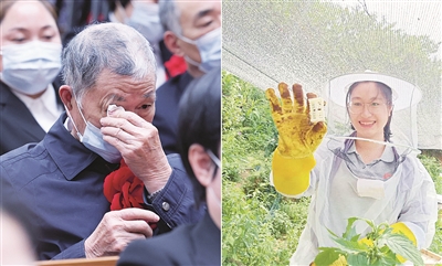 左图为黄文秀的父亲黄忠杰在表彰大会上(新华社 刘彬 摄);右图为黄文秀生前工作照(资料照片)。