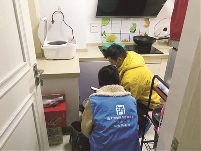 近日,南太湖新区网格员陆菲在安全专家带领下,对网格内燃气安全隐患进行排查。每到一户,他们都详细查看厨房内的燃气使用器材是否合格、输气管道是否存在老化腐蚀等情况。