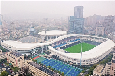 历时2年建设,杭州市余杭区亚运场馆改建项目日前完工。该项目在原余杭区体育中心基础上改建而成,用丝带造型串联起体育馆、体育场、媒体中心三大建筑体,建成后将承担杭州2022年亚运会的足球、排球和空手道比赛。