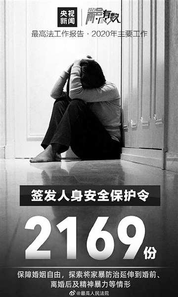 2020年,法院签发人身安全保护令2169份,在实施者和受害人之间筑起了一道“隔离墙”,有力地震慑、教育、惩罚了施暴者,遏制了家庭暴力的发生。现阶段,我国不同形式的家庭暴力也大量存在。2021年最高人民法院工作报告说,探索将家暴防治延伸到婚前离婚后及精神暴力等情形。
