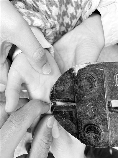 经现场了解,小女孩的手指虽然被卡多时,幸未明显肿胀。消防员在做好防护措施的前提下,用绝缘剪对拉链进行剪切,成功将小女孩的手指中拉链中分离出来。