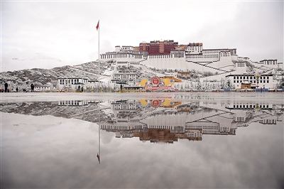 3月14日拍摄的雪中布达拉宫。