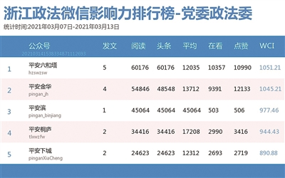 本期政法委榜,“平安六和塔”重回榜首,“平安金华”和“平安滨”紧随其后。热文榜上,“平安滨”发布的《网格故事③:满门心思解民忧,身体力行护平安》,获得4.5万阅读量,跻身热文榜第一。