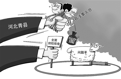 “瘦肉精”问题羊肉被央视3·15晚会曝光后,河北青县县委、县政府于当晚9点半开始,连夜开展封控排查处置工作。截至3月16日上午8点,在涉事养殖户回成杰养殖场饲料中检测出“瘦肉精”阳性,对新兴镇21.9万只存栏羊的抽样送检以及全县所有肉羊养殖户的排查工作正在进行中。