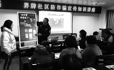 连日来,台州市公安局椒江区分局府前派出所民警向辖区群众宣传推广防范电信诈骗小程序“金钟罩”。群众扫码注册后,便能加入派出所“金钟罩警民联防平台”的受保护名单。通讯员 何文斌 摄