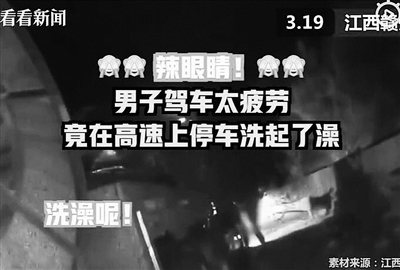 近日,江西高速交警在巡逻时,发现一辆大型货车打着双闪停在应急车道上,一名赤裸着上身的男子正在货车水箱旁冲凉。司机称由于长途驾车比较劳累,想着冲个凉清醒一下,但考虑到疫情就没有进服务区。民警对货车司机处以罚款200元、驾驶证记6分的处罚。