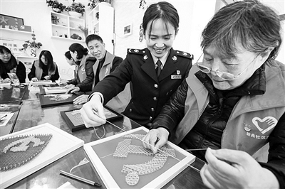 3月23日,宁波市海曙区段塘街道新典社区党员志愿者和共建单位段塘税务所的党员们,在“七色艺术工作室”开展党建活动。“七色艺术工作室”已成立15年,创立者何川英阿姨每周都会召集工作室成员制作手工艺品,通过义卖筹集善款,帮助困难群众。贺元凯 张昊桦 练巧玲 桂琳