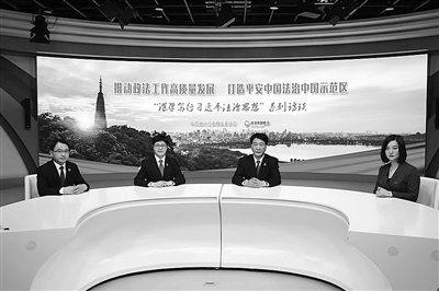 3月30日,由省委政法委、浙法传媒集团共同举办的“深学笃行习近平法治思想”系列访谈第二期开播,特邀浙江省高级人民法院党组副书记、常务副院长周招社,宁波市中级人民法院党组书记、院长陈志君,湖州南太湖新区人民法院党组书记、院长闵海峰,一起畅谈如何加快推进新时代现代化法院建设。