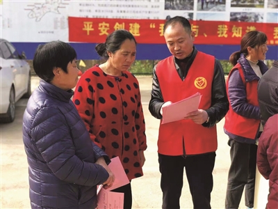 近日,长兴县虹星桥镇各村开展形式多样的平安“三率”宣传活动。郑家村村民走进虹星桥派出所警务室,接受平安“三率”知识培训;西南村网格员们走村入户发放平安“三率”宣传单。图为宋高村的党员志愿者向村民普及平安“三率”相关知识。