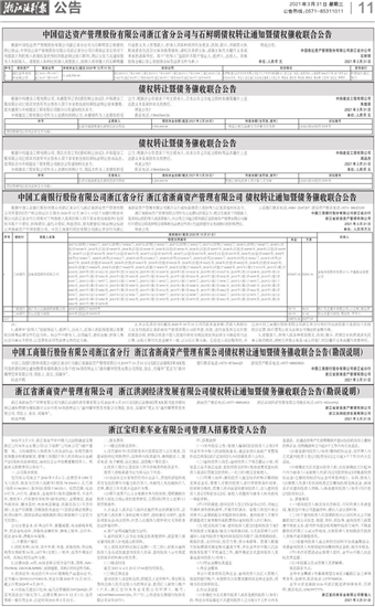 中国工商银行股份有限公司浙江省分行 浙江省浙商资产管理有限公司 债权转让通知暨债务催收联合公告