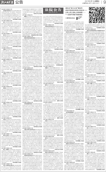 (2020)浙0106民初8212号 杭州嘉乐科技有限公司:本院受理原告邵群诉你请求变更公司登记纠纷一案已审理终结。现依法向你送达(2020)浙0106民初8212号民事判决书。自公告之日起60日内来本院领取民事判决书,逾期则视为送达。如不服本判决,可在公告期满后15日内,向本院递交上诉状及副本,上诉于浙江省杭州市中级人民法院。逾期未上诉的,本判决即发生法律效力。杭州市西湖区人民法院(2021)浙0106民初1649号 祝仕:本院受理原告张巍与你民间借贷纠纷一案,现依法向你公告送达起诉状副本、应诉通知书、举证通知书、开庭传票、廉政监督卡等。自公告之日起,经过60日,即视为送达。提交答辩状和举证的期限均为公告期满后的15日内。本案定于举证期满后第3日下午14时30分(遇法定节假日顺延)在本院诉调中心法庭1公开开庭审理。逾期不答辩、不出庭的相关不利后果由你方承担。杭州市西湖区人民法院(2021)浙0106民初2717号 郑小祥:本院受理(2021)浙0106民初2717号原告黎少勇诉你民间借贷纠纷一案,现依法向你公告送达起诉状副本、证据材料、应诉通知书、举证通知书、开庭传票、民事裁定书等。自公告之日起,经过60日即视为送达。提出答辩状和举证的期限均为公告期满后的15日内。并定于举证期满后的第3日上午9:10(遇法定节假日顺延至其后的第1个工作日)在本院诉讼调解对接中心第2法庭公开开庭审理,逾期不答辩、不出庭的相关不利后果由你方承担。杭州市西湖区人民法院(2020)浙0106民初2881号 王爱芬:本院受理浙江泰茂融资担保有限公司诉你方、周越年追偿权纠纷一案已审理终结。现依法向你送达(2020)浙0106民初2881号民事判决书。自公告之日起60日内来本院领取民事判决书,逾期则视为送达。如不服本判决,可在公告期满后15日内,向本院递交上诉状及副本,上诉于浙江省杭州市中级人民法院。逾期未上诉的,本判决即发生法律效力。杭州市西湖区人民法院(2020)浙0106民初5545号 郑昌凤:本院受理杭州联合农村商业银行股份有限公司三墩支行诉你方金融借款合同纠纷一案已审理终结。现依法向你送达(2020)浙0106民初5545号民事判决书。自公告之日起60日内来本院领取民事判决书,逾期则视为送达。如不服本判决,可在公告期满后15日内,向本院递交上诉状及副本,上诉于浙江省杭州市中级人民法院。逾期未上诉的,本判决即发生法律效力。杭州市西湖区人民法院