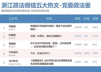本期政法委榜,“微嘉园”强势霸榜,不仅拿下影响力榜冠军,还拿下了热文榜前三甲。其中,《微嘉园又双叒叕升级啦!请收下这份操作指南~》一文拿下热文榜第一,该文通过图文结合的形式,将自家公众号升级改版后的操作做了详细介绍,十分便民。