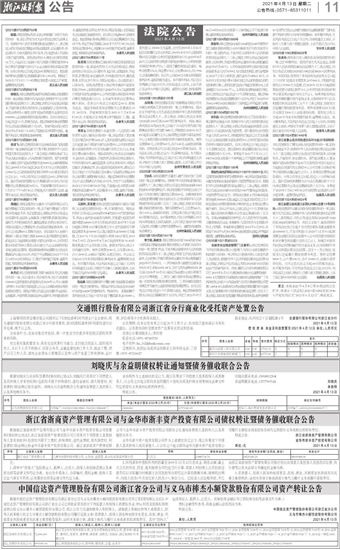 特此公告。中国信达资产管理股份有限公司浙江省分公司