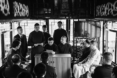 近日,一场红色党课在“红船水上课堂”开讲。11位嘉兴南湖公安民警身着道具服装,演绎当年在红船上激动人心的历史时刻。