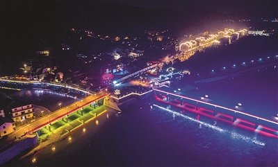 近年来,杭州市临安区河桥古镇有序推进美丽城镇建设,打造行浸式夜游体验项目,拓宽古镇旅游夜经济产业空间。新华社 徐昱 摄